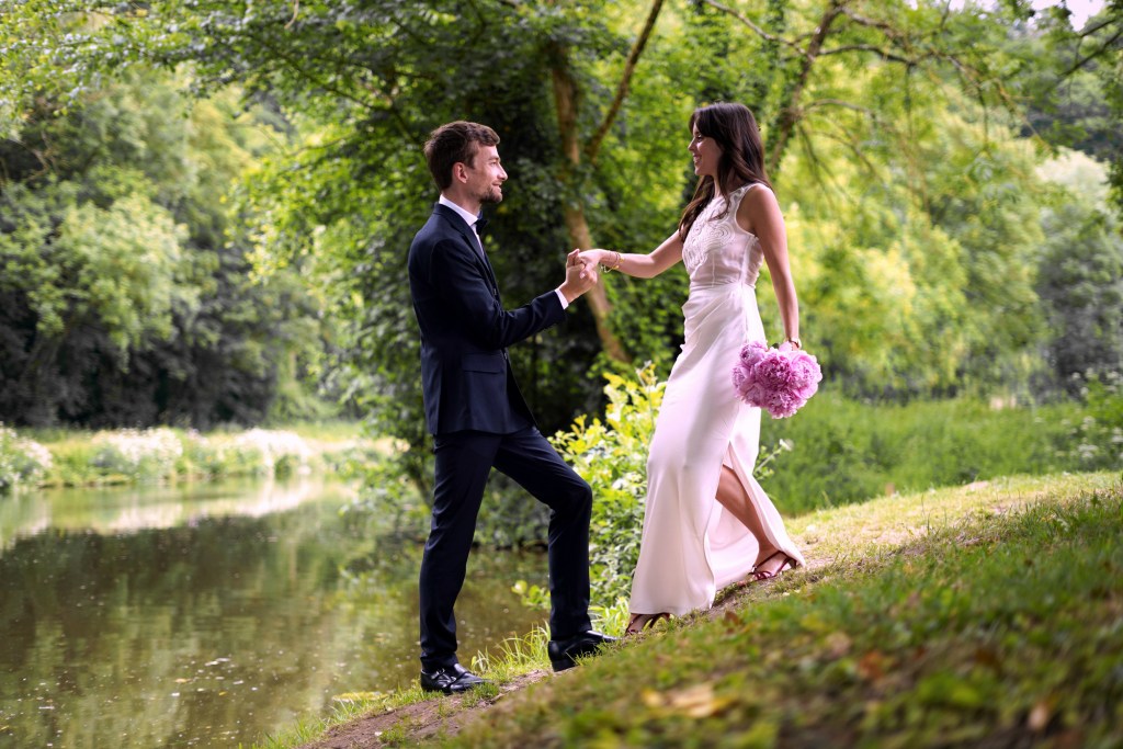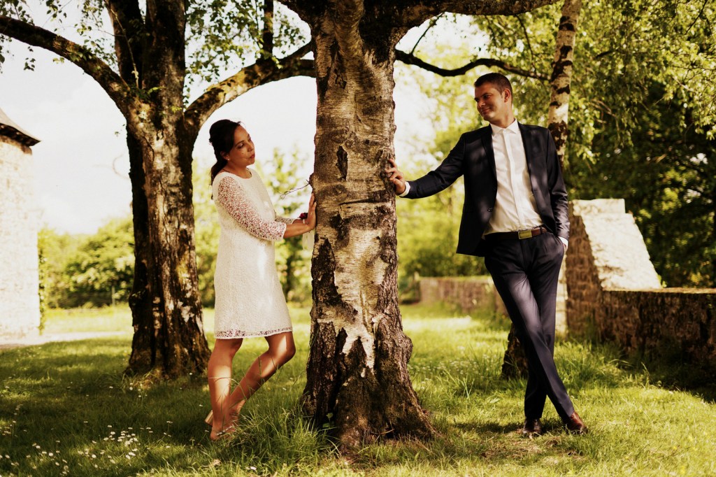 Une séance en tenue de mariage ou apprêté(e)s pour l’occasion, quelques semaines avant le grand jour.